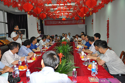 參觀結束后,滄州市縣領導、呂梁市縣領導、臨縣公司董事長、恩際集團董事長等在我公司會議室對紅棗產業的發展進行了深入的研討和交流,并對實現新一輪的新跨越、新發展進行了展望。雙方商定,在未來紅棗深加工領域進行更深一步合作。