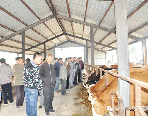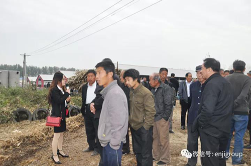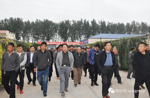 2017年10月12日,恩際集團董事長攜總經理、辦公室主任、小營鄉政府各級領導、各片片長、全體包村干部、各村支部書記、村委會主任、貧困戶代表、貧困村第一書記一行100余人來到鹽山欣發牧業進行參觀考察。